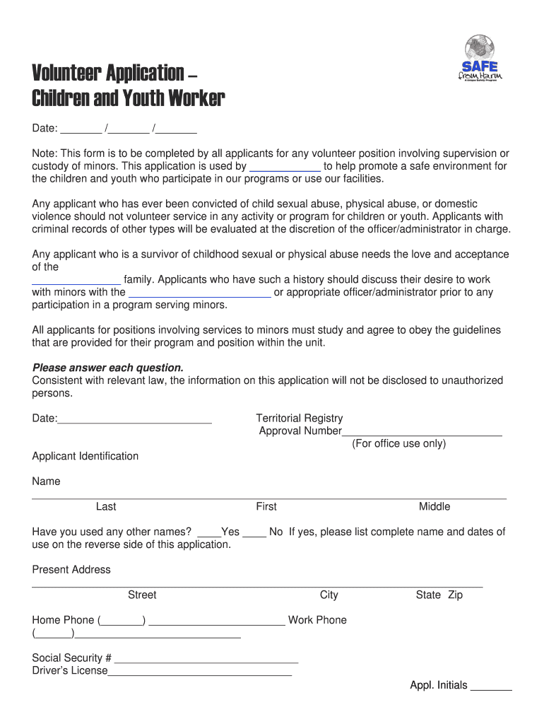 The Salvation Army NSC Volunteer Application Date of Application: Name: Street Address: City: State: Zip: Telephone (Home): Telephone (other): City, State, Zip: Email Address:PLEASE NOTE: This form