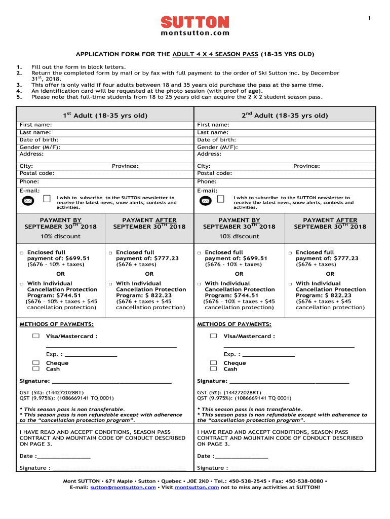 1APPLICATION FORM FOR THE ADULT 4 × 4 SEASON PASS (1835 YRS OLD)