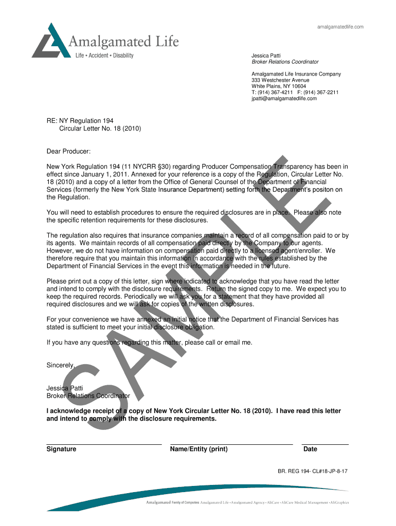 Get the free NY Regulation 194 Circular Letter No. 18 - Amalgamated Life