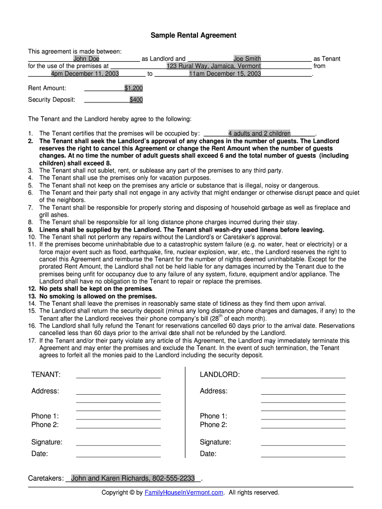 Get the free Sample Rental Agreement