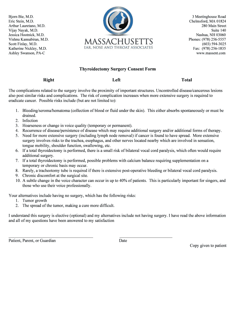 Get the free Thyroidectomy surgery consent - Mass ENT Associates
