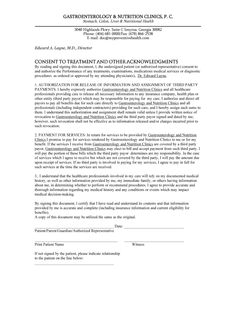 GASTROENTEROLOGY & NUTRITION CLINICS, P. C. Stomach, Colon, Liver & Nutritional Health3040 Highlands Pkwy. Suite C Smyrna, Georgia 30082 Phone: (404) 6810000/Fax: (678) 8662538 Email: doc mypreventivehealth.com