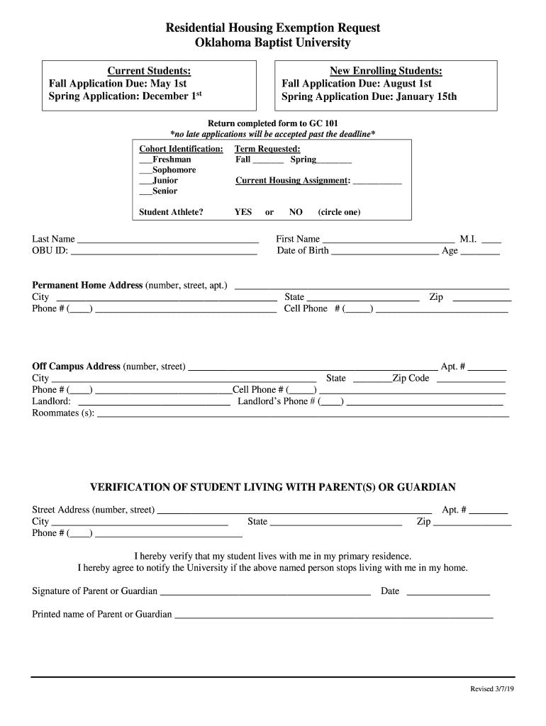 Get the free Residential Housing Exemption Request Oklahoma Baptist ...
