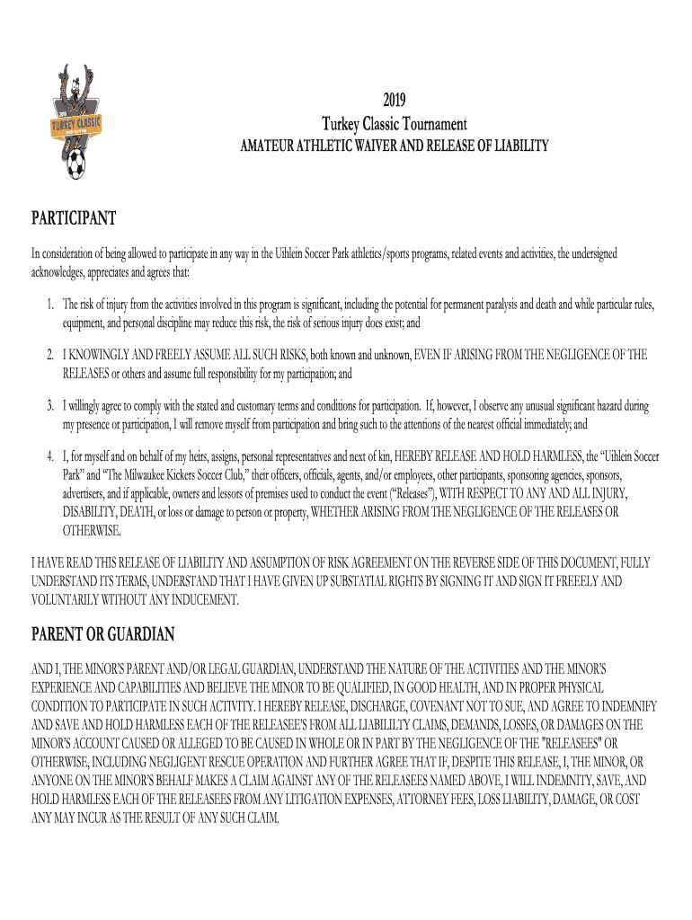 AMATEUR ATHLETIC WAIVER AND RELEASE OF LIABILITYPARTICIPANT