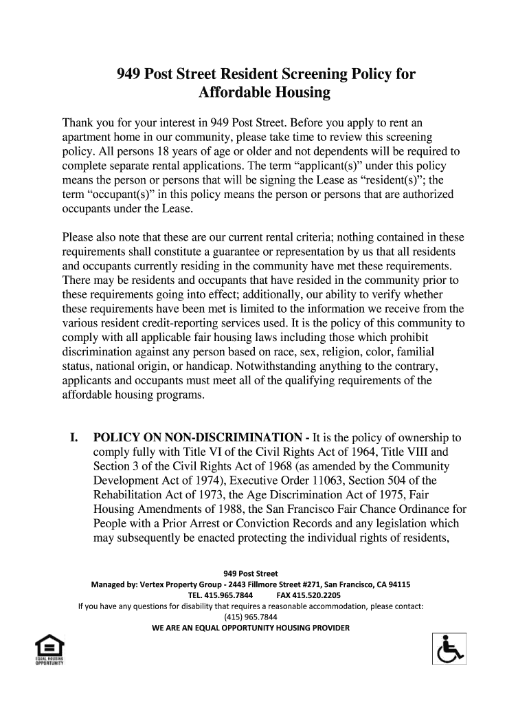 949 Post Street Resident Screening Policy for