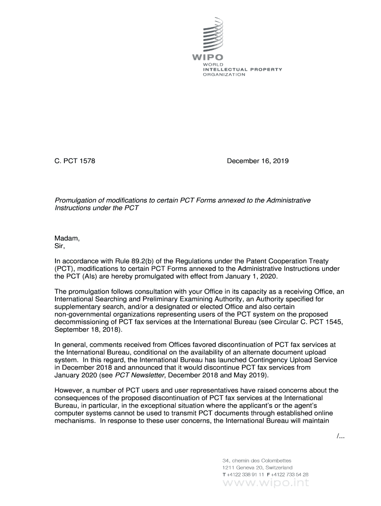 L:DAT1OrgpctlSharedPCTcirc15781578e.docxPromulgation of modifications to certain PCT Forms annexed to the