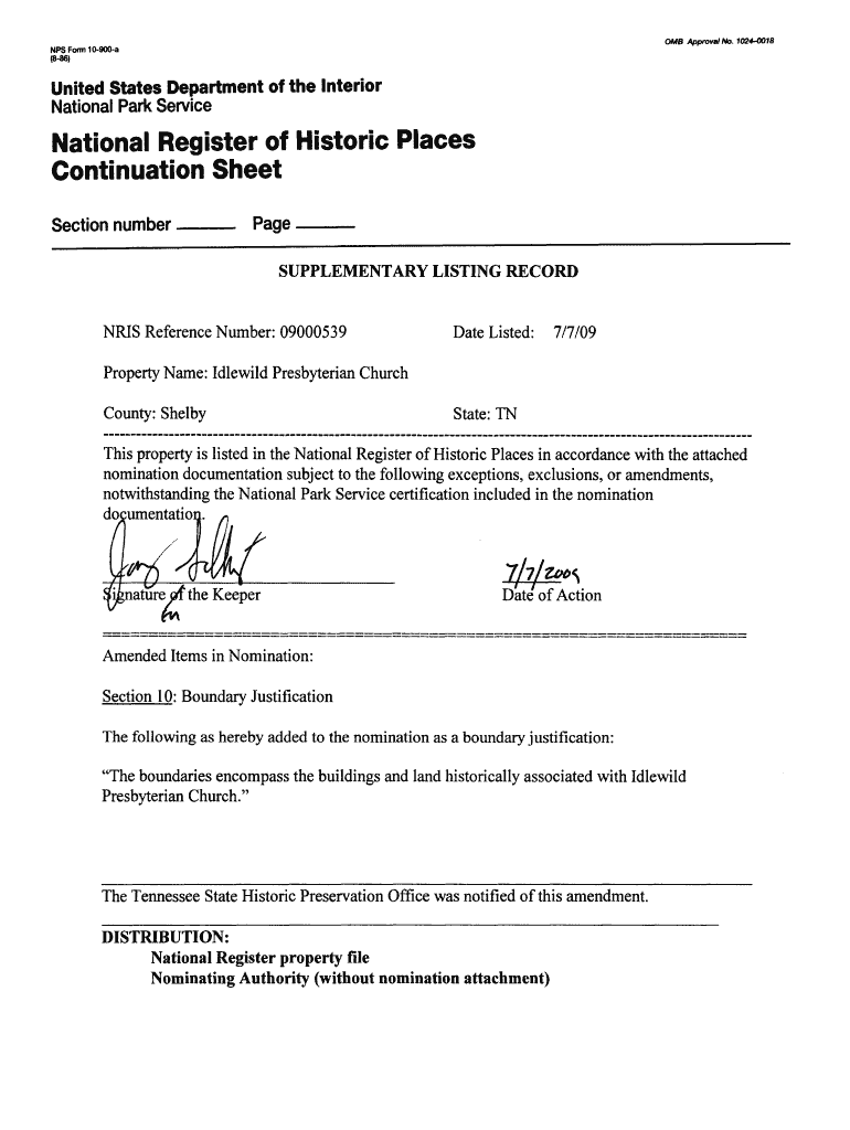 OMB Approval No. 10240018NPSForm10900a (886)United States Department of the Interior National Park ServiceNational Register of Historic Places Continuation Sheet Section number Page SUPPLEMENTARY