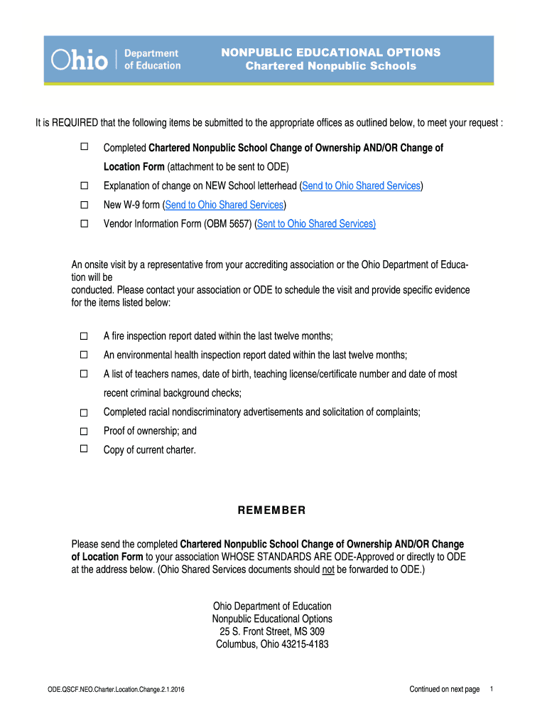 Chartered Nonpublic Schools It is REQUIRED that the following items be submitted to the appropriate offices as outlined below, to meet your request :
