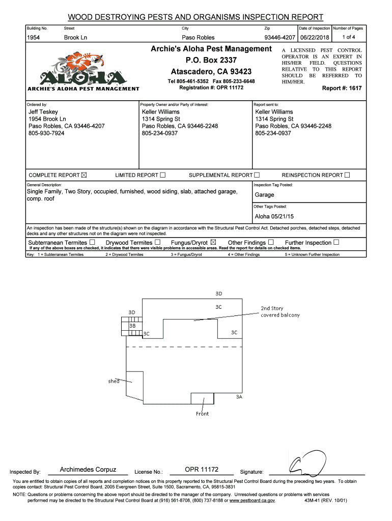 Building No. StreetCityZip1954BrookLnPasoRobles934464207 06/22/2018Archie\'sAlohaPestManagement