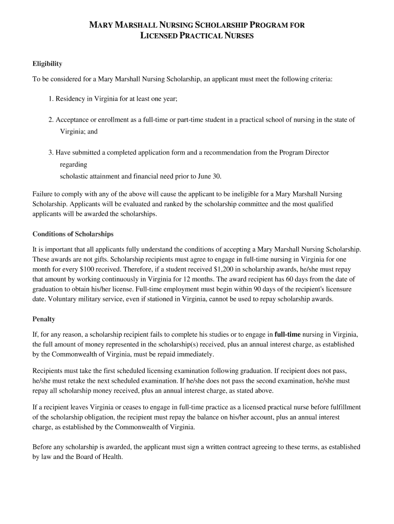 MARY MARSHALL NURSING SCHOLARSHIP PROGRAM FOR