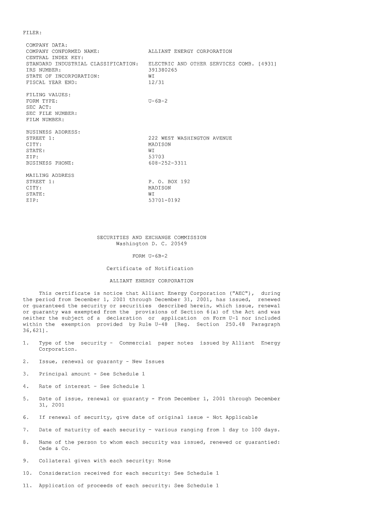 FILER: COMPANY DATA: COMPANY CONFORMED NAME: CENTRAL INDEX KEY: STANDARD INDUSTRIAL CLASSIFICATION: IRS NUMBER: STATE OF INCORPORATION: FISCAL YEAR END: FILING VALUES: FORM TYPE: SEC ACT: SEC FILE