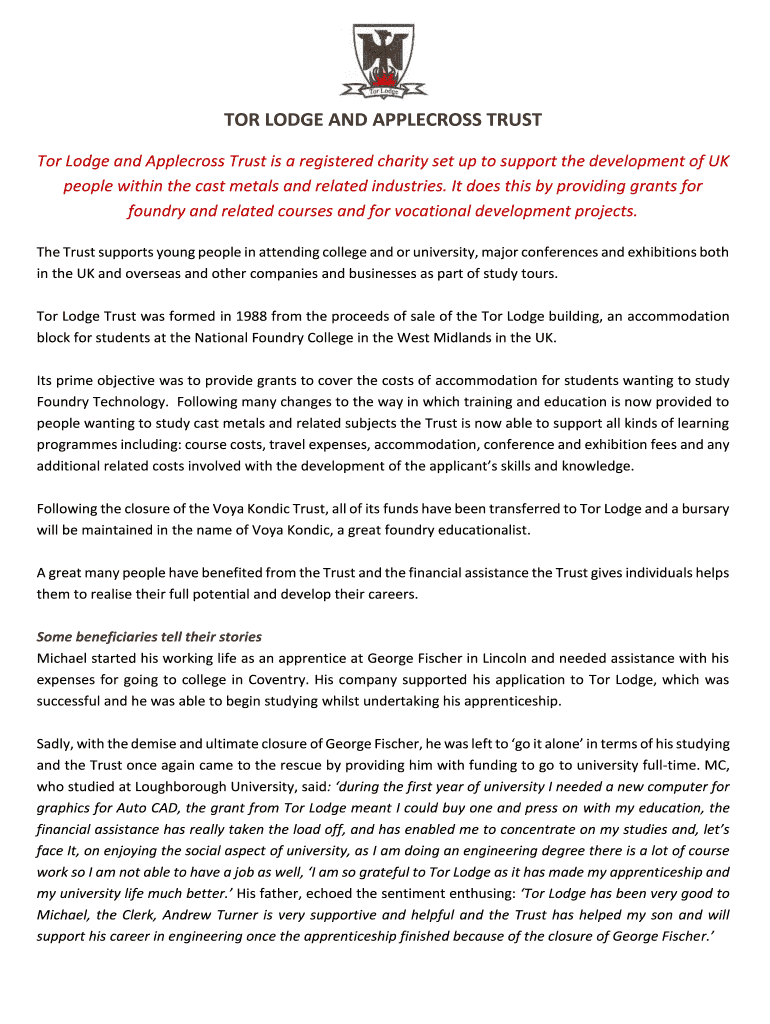 Tor Lodge and Apple cross Trust is a registered charity set up to support the development of UK