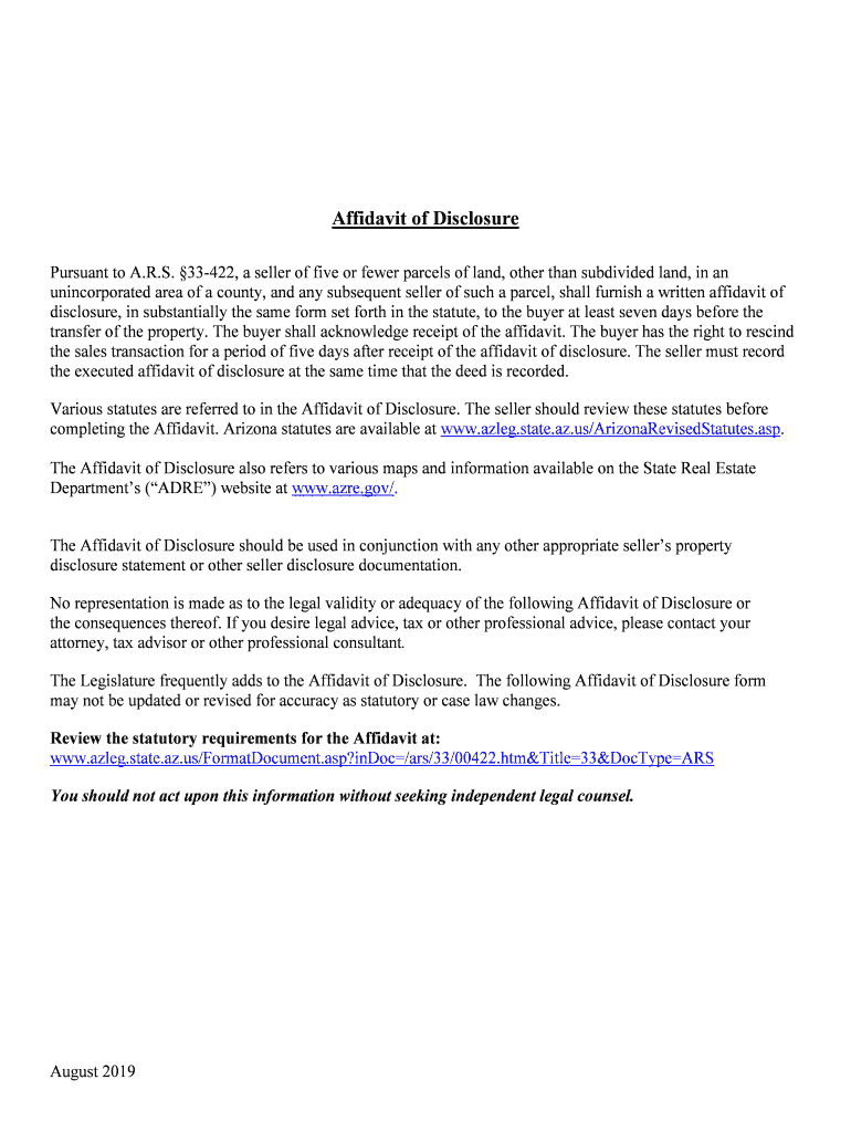 AZ Affidavit of Disclosure 2019-2025 free printable template