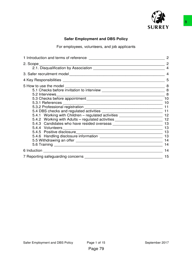 8Safer Employment and DBS Policy For employees, volunteers, and job applicants 1 Introduction and terms of reference 2 2. Scope 2 2.1. Disqualification by Association 4 3. Safer recruitment model