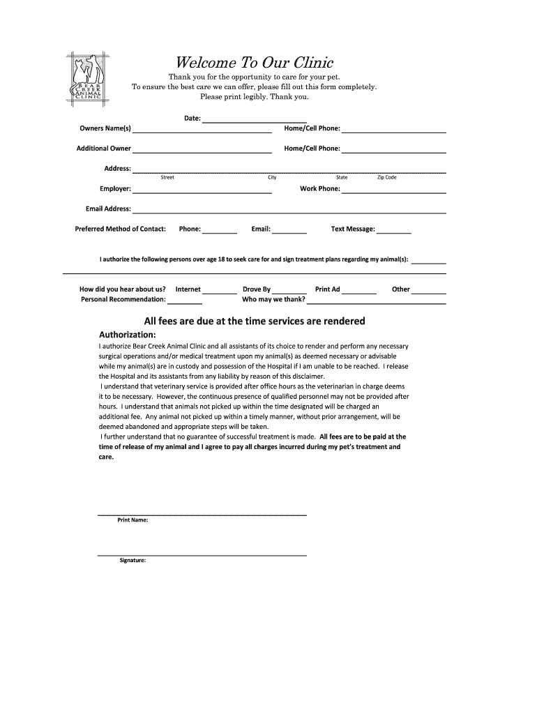 Get the free New Patient Welcome Form - Animal Clinic Inc. of Chattanooga