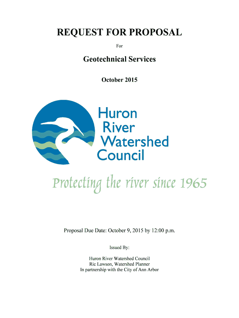 REQUEST FOR PROPOSAL Geotechnical Services October 2015Proposal Due Date: October 9, 2015, by 12:00 p.m. Issued By: Huron River Watershed Council RIC Lawson, Watershed Planner In partnership with