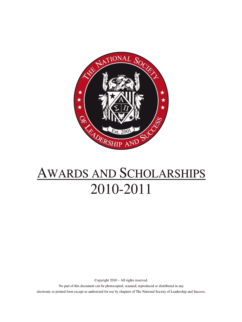 AWARDS AND SCHOLARSHIPS 2010-2011 Copyright 2010 All rights reserved. No part of this document can be photocopied, scanned, reproduced or distributed in any electronic or printed form except as authorized