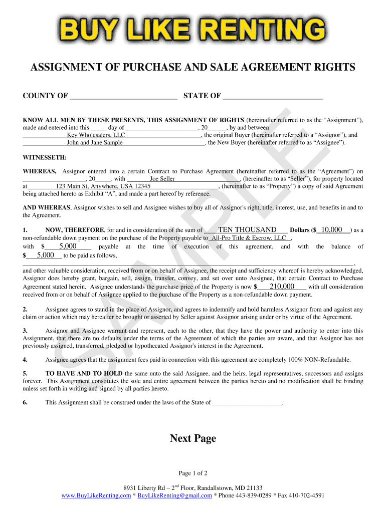 Get the free Assignment of Purchase and Sale Agreement Rights