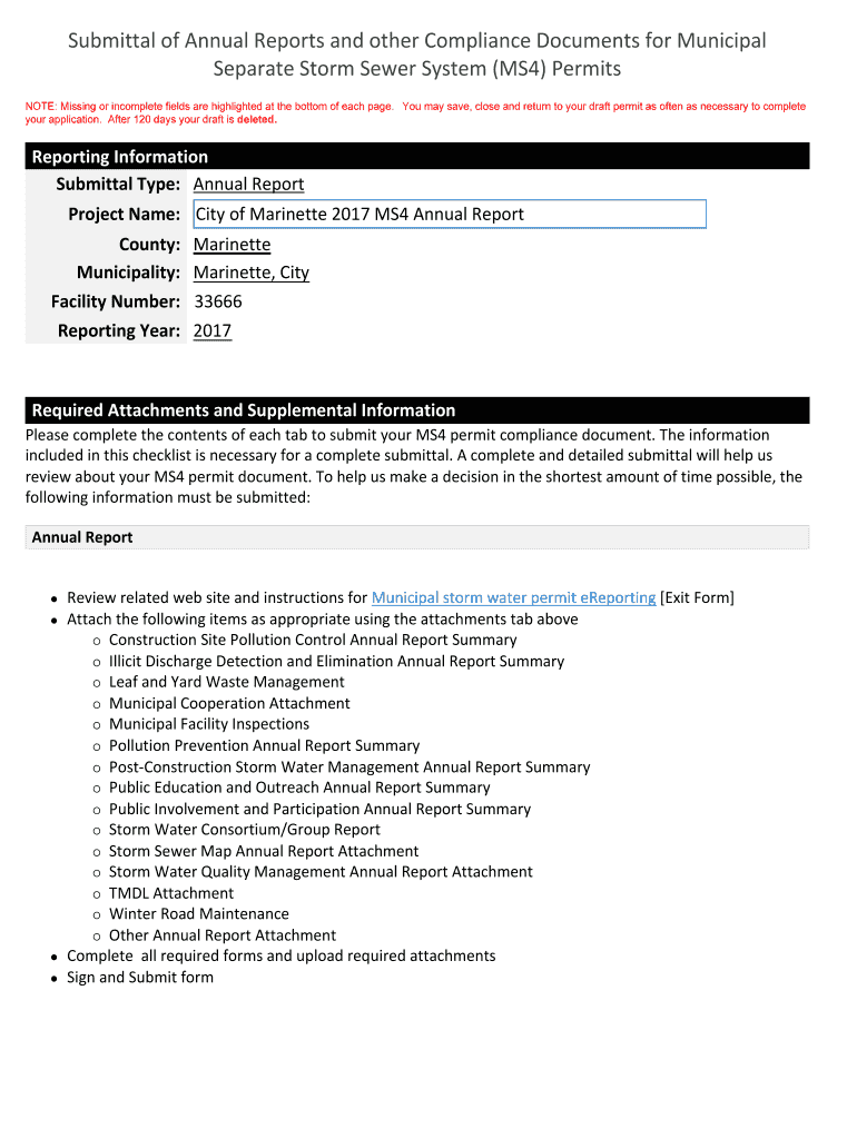 Submittal of Annual Reports and other Compliance Documents for Municipal