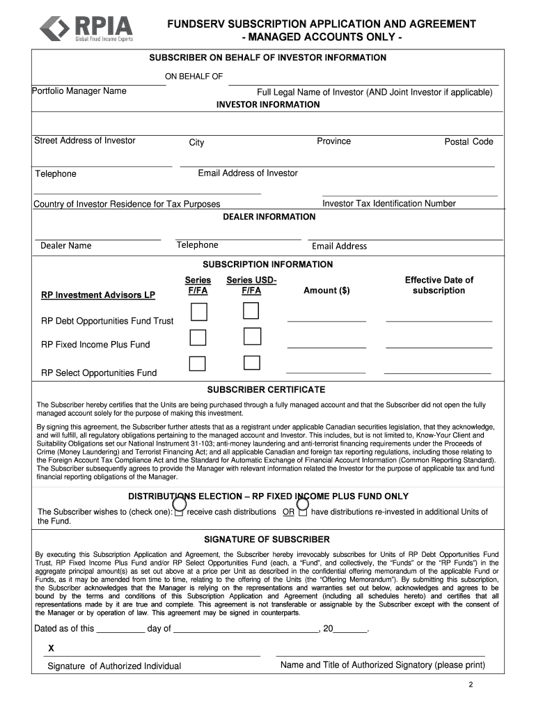 FUNDS ERV MANAGED ACCOUNTS ONLYSUBSCRIPTION APPLICATION AND AGREEMENT FOR SERIES F/FA AND SERIES USAF/FA ONLY OF THE RP FUNDS SUBSCRIPTION INSTRUCTIONS Please email this completed subscription form