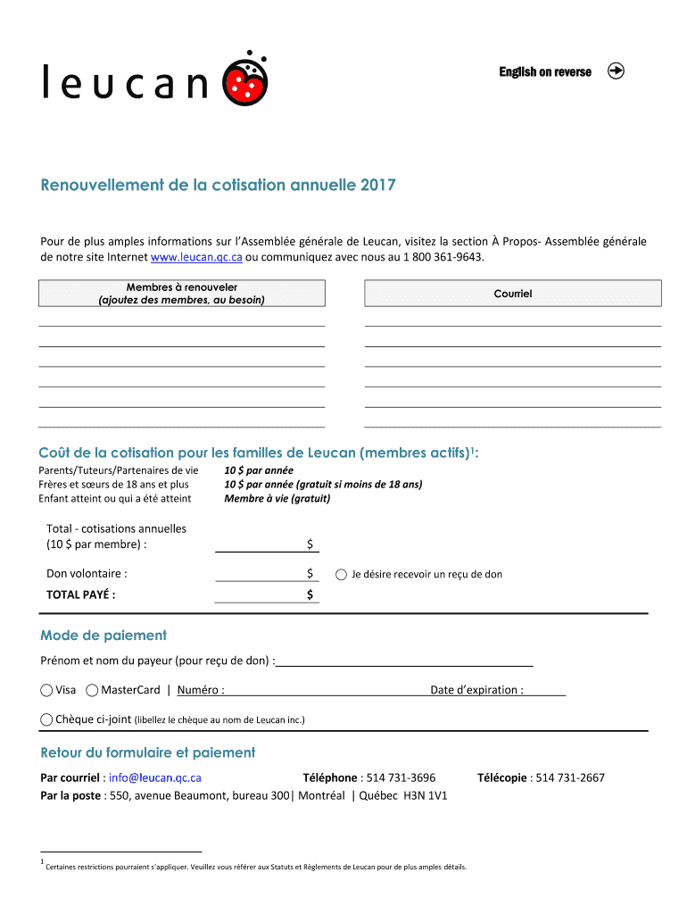 English on reverseRenouvellement de la motivation annually 2017Pour de plus samples information SUR assemble GRALE de Lucas, visited la section Propose Assemble GRALE de note site Internet www.leucan.qc.ca