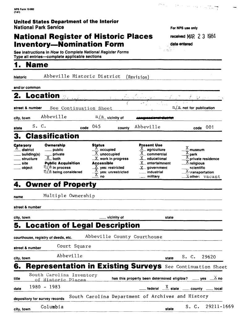 NFS Form 10900 (781)United States Department of the Interior National Park ServiceNow NFS use onlyNational Register of Historic Places Inventory Nomination Form received MAR 2 3 1984See instructions