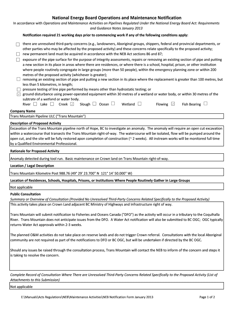 Get the free NEB OM Notification Form KP 988 76 (2) - apps neb-one gc