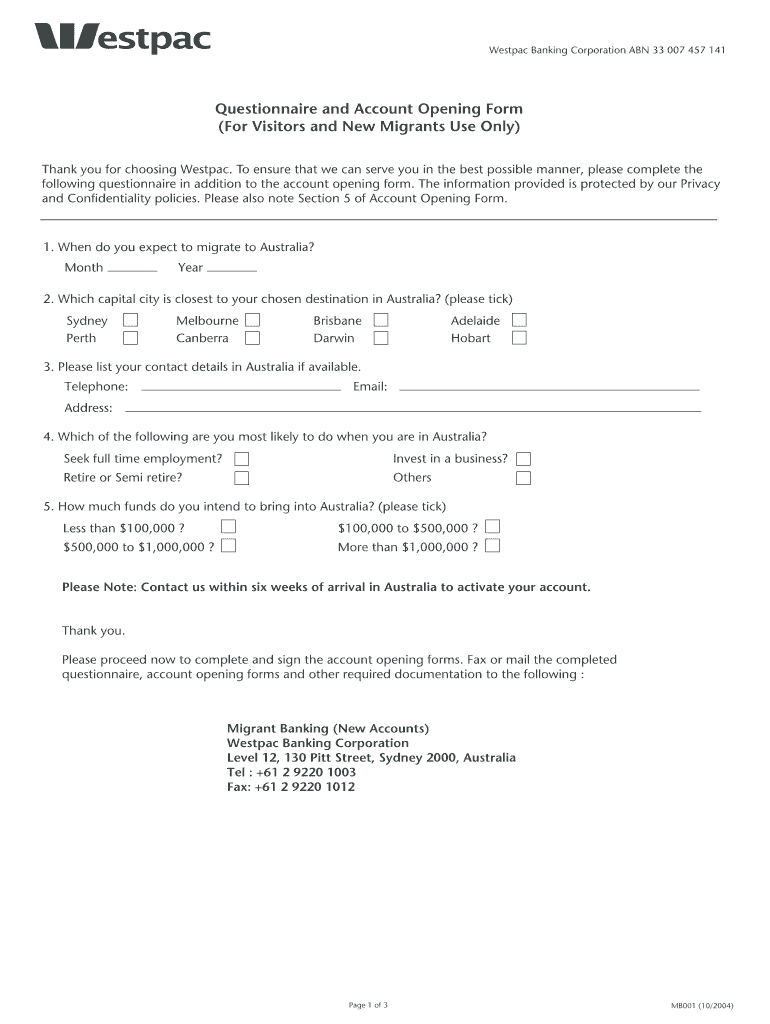 Westpac Banking Corporation ABN 33 007 457 141Questionnaire and Account Opening Form
