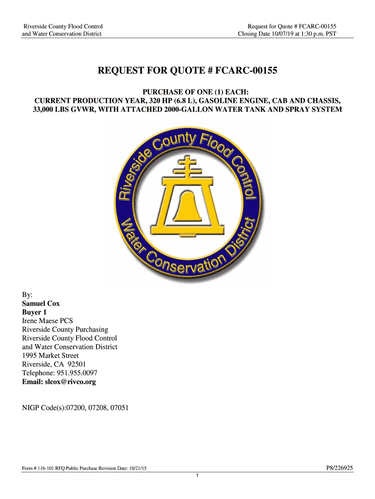 Closing Date 10/07/19 at 1:30 p.m. REQUEST FOR QUOTE # FCARC00155