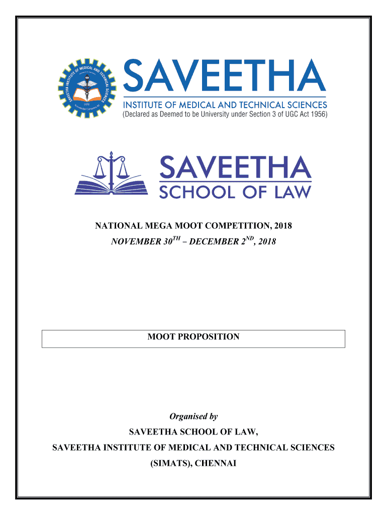 NATIONAL MEGA MOOT COMPETITION, 2018 NOVEMBER 30TH DECEMBER 2ND, 2018MOOT PROPOSITIONOrganised by SEVENTH SCHOOL OF LAW, SEVENTH INSTITUTE OF MEDICAL AND TECHNICAL SCIENCES (SI MATS), CHENNAIMEGA