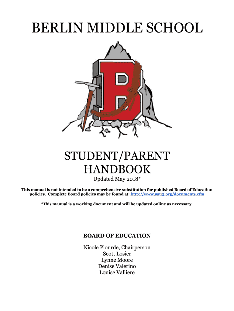 BERLIN MIDDLE SCHOOLSTUDENT/PARENT HANDBOOK Updated May 2018×This manual is not intended to be a comprehensive substitution for published Board of Education policies. Complete Board policies may