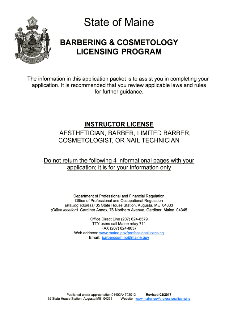 State of Maine BARBERING & COSMETOLOGY LICENSING PROGRAM The information in this application packet is to assist you in completing your application. It is recommended that you review applicable laws