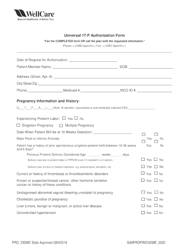 Universal 17P Authorization Form×Fax the COMPLETED form OR call the plan with the requested information.×Phone: CMO specific Fax: CMO Specificity of Request for Authorization: