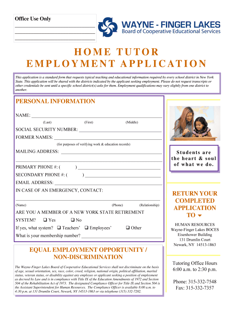 Get the free employment appl tutor sub.pub