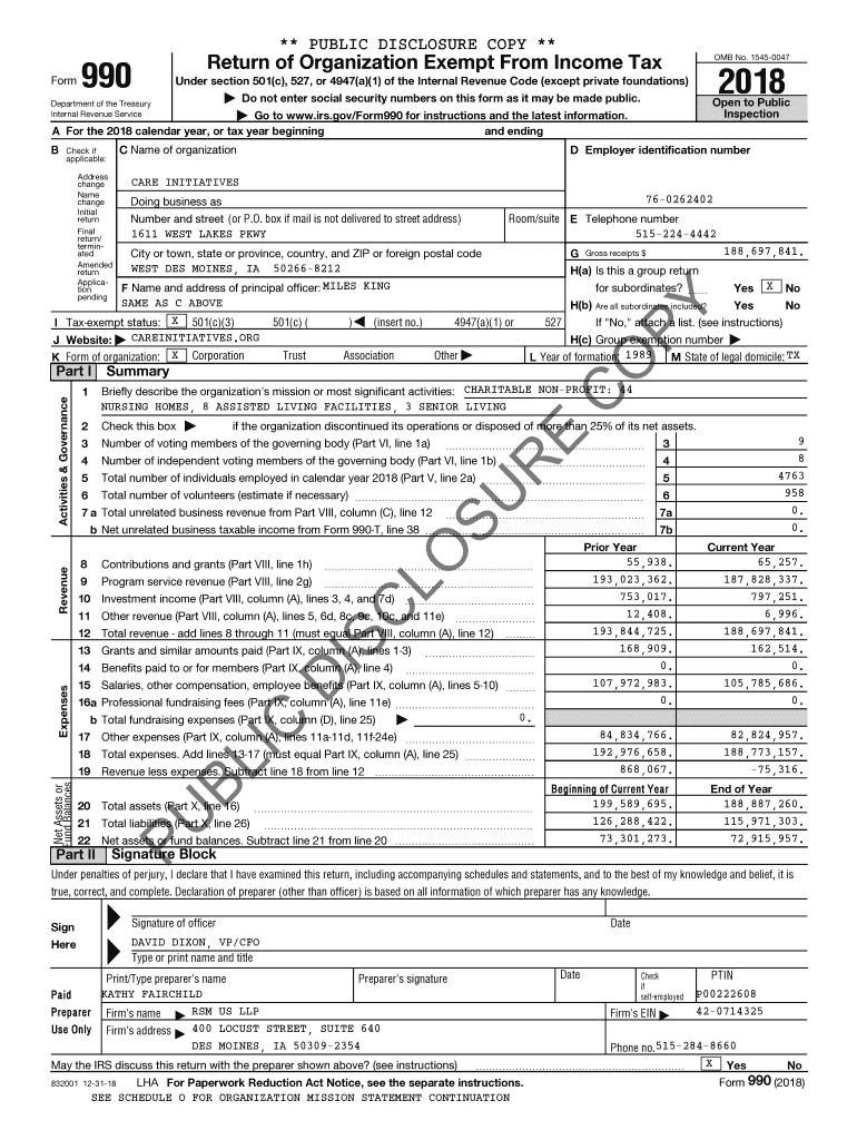 ** PUBLIC DISCLOSURE COPY ** Form990Return of Organization Exempt From Income Tax OMB No. 15450047 Do not enter social security numbers on this form as it may be made public. Open to Public Inspection2018Under