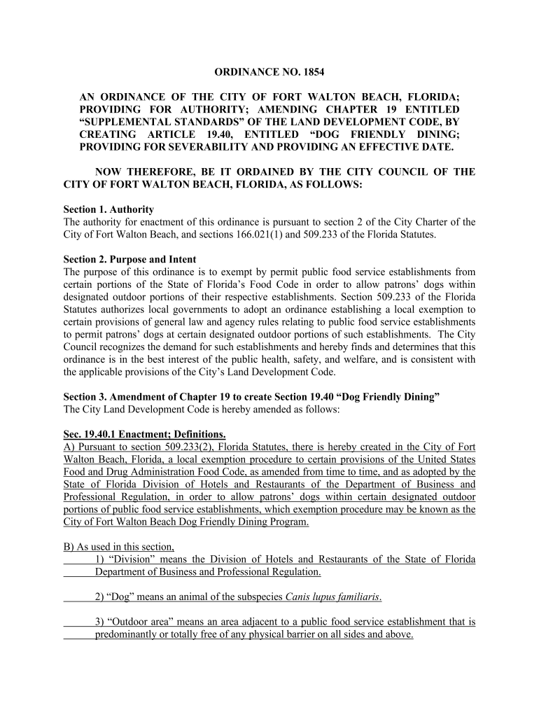 AN ORDINANCE OF THE CITY OF FORT WALTON BEACH, FLORIDA;