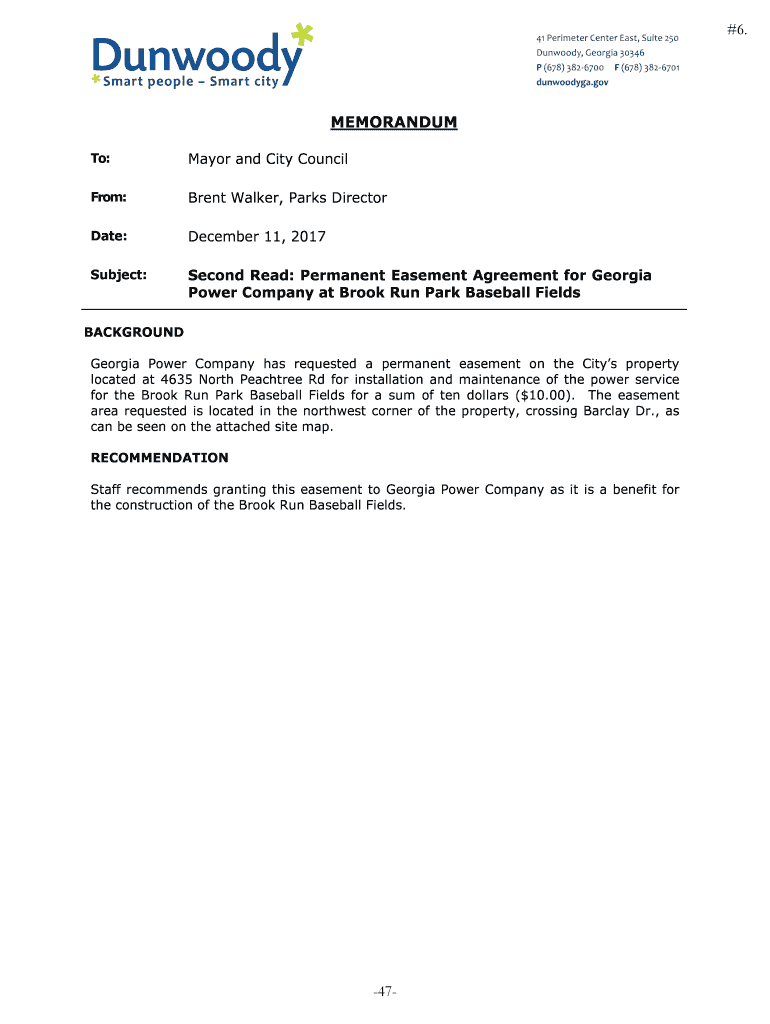 To:Mayor and City Councilor:Brent Walker, Parks Directorate:December 11, 2017Subject:Second Read: Permanent Easement Agreement for Georgia