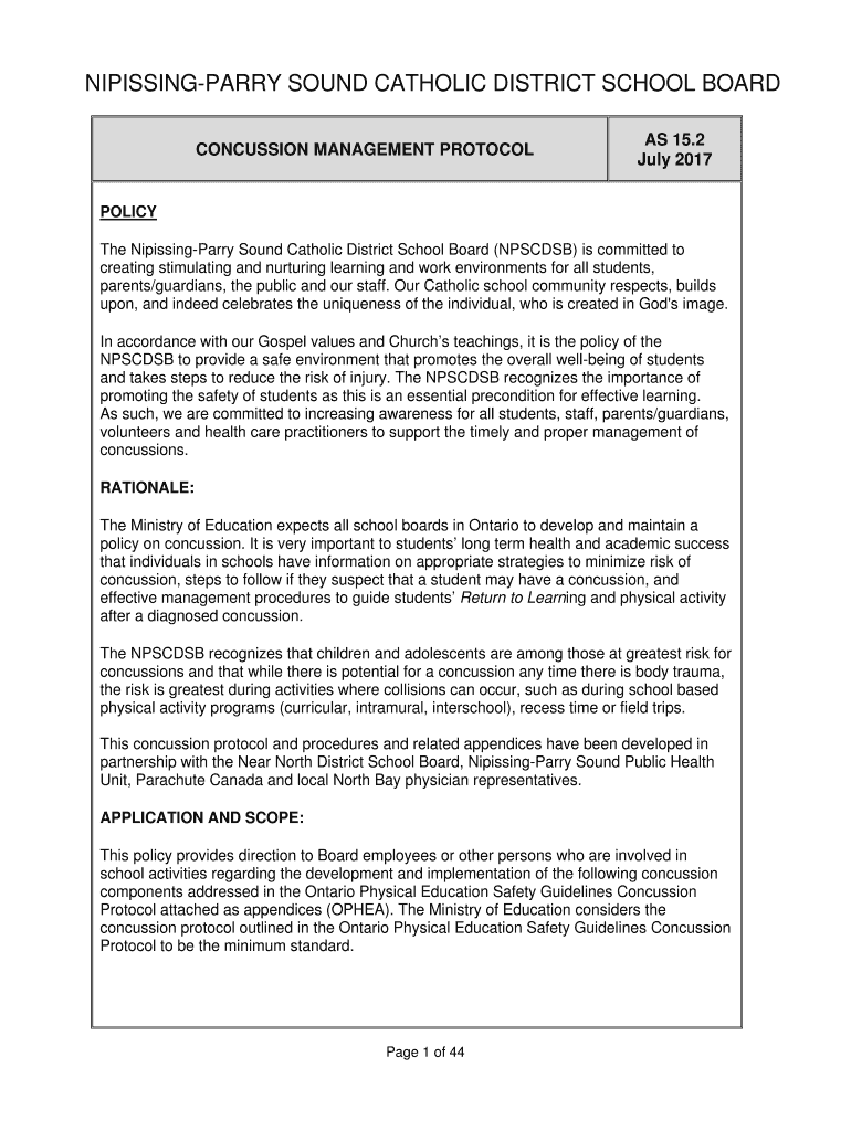 CONCUSSION MANAGEMENT PROTOCOLS 15.2