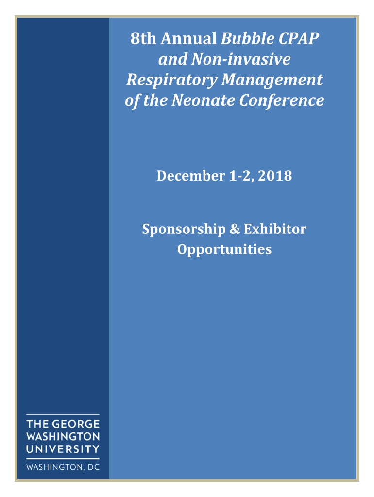8th Annual Bubble Company NoninvasiveRespiratory Management of the Neonate Conference December 12, 2018Sponsorship & ExhibitorOpportunitiesDear Prospective Exhibitor, On behalf of The George Washington