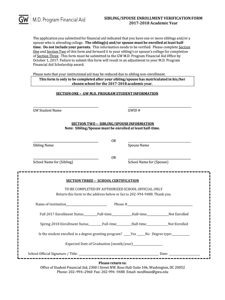 Get the free SIBLING/SPOUSE ENROLLMENT VERIFICATION FORM 2017-2018 ...