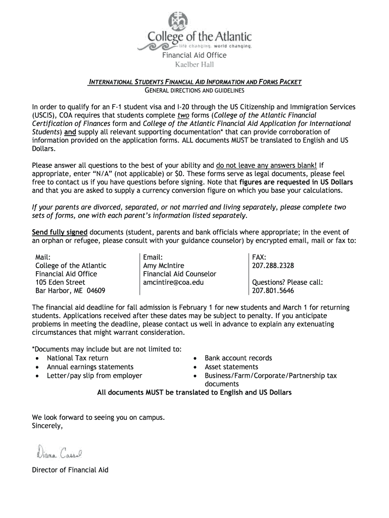 INTERNATIONAL STUDENTS FINANCIAL AID INFORMATION AND FORMS PACKET