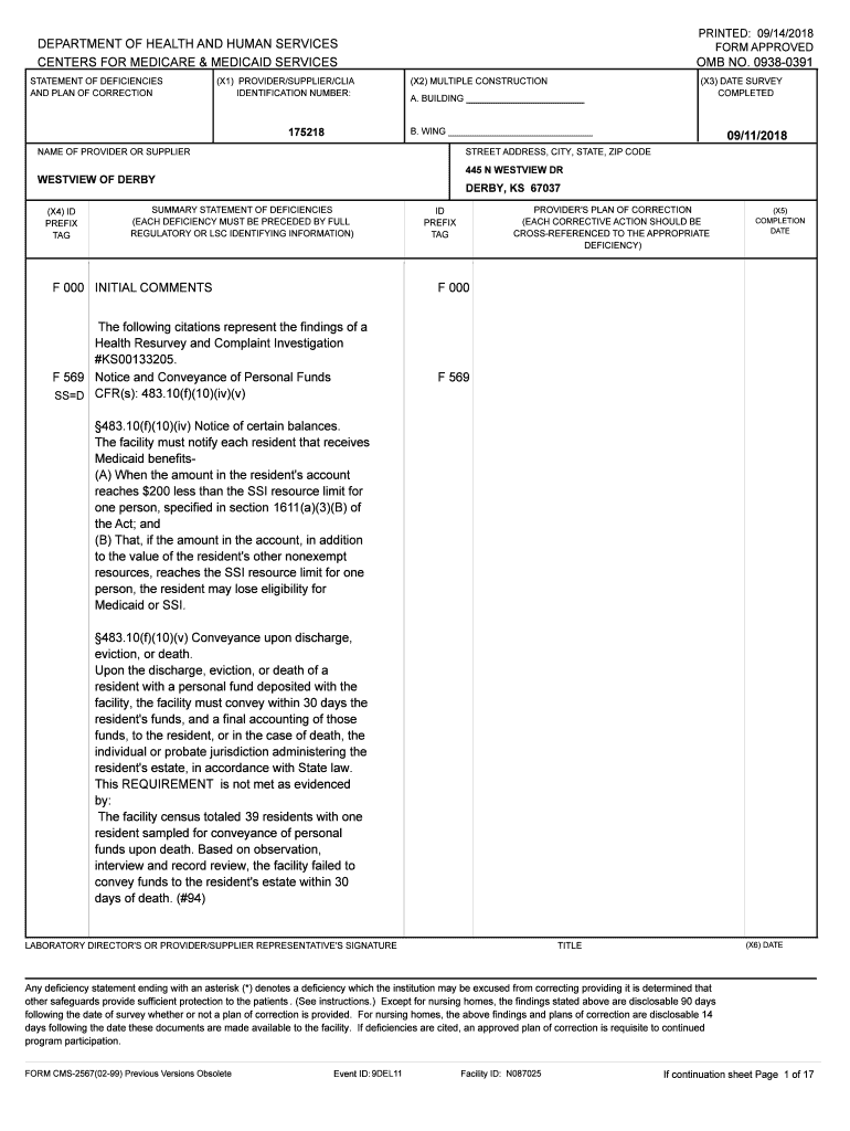 PRINTED: 09/14/2018 FORM APPROVEDDEPARTMENT OF HEALTH AND HUMAN SERVICES CENTERS FOR MEDICARE & MEDICAID SERVICES STATEMENT OF DEFICIENCIES AND PLAN OF CORRECTION(X1) PROVIDER/SUPPLIER/CIA IDENTIFICATION