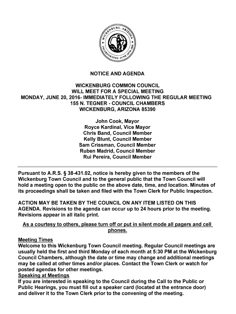 Get, Create, Make and Sign notice and agenda wickenburg