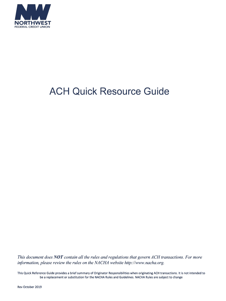 ACH Quick Resource Guides document does NOT contain all the rules and regulations that govern ACH transactions. For more information, please review the rules on the NACA website http://www.nacha.org.