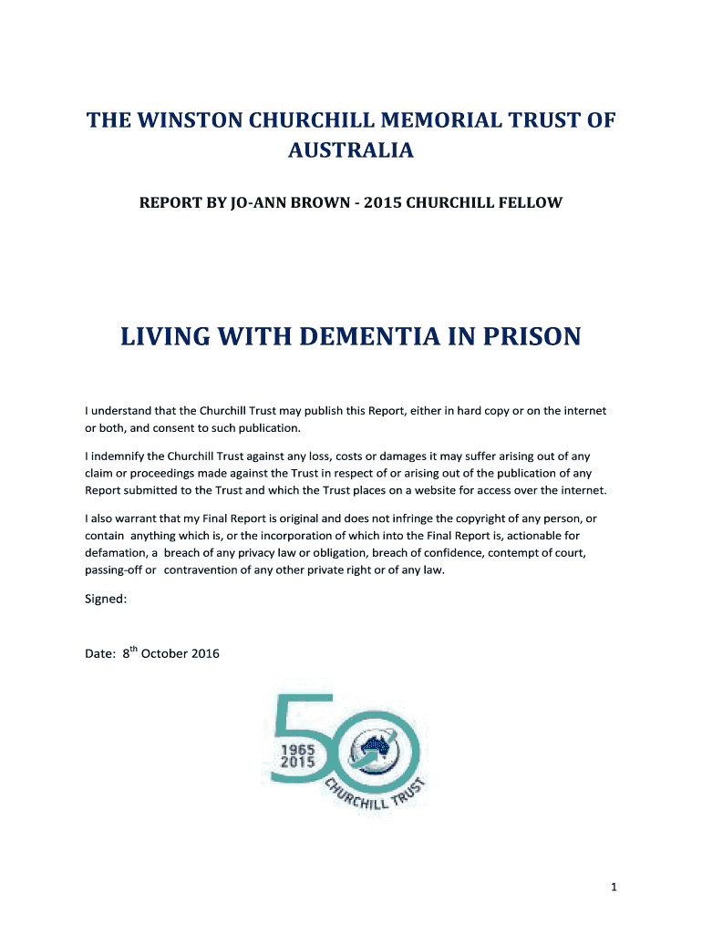 THE WINSTON CHURCHILL MEMORIAL TRUST OF AUSTRALIA REPORT BY JOANN BROWN 2015 CHURCHILL FELLOWLIVING WITH DEMENTIA IN PRISON I understand that the Churchill Trust may publish this Report, either in