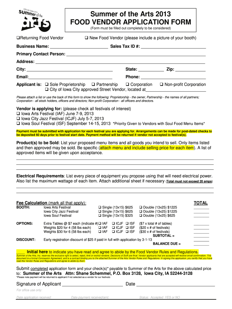 Get the free Returning Food Vendor - summerofthearts