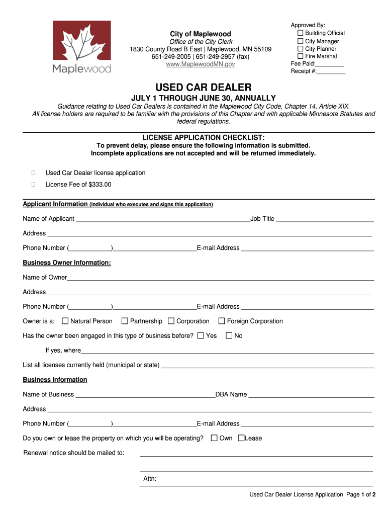 How to fill out used car dealer