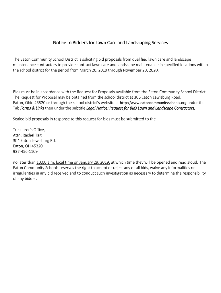 Get the free Notice to Bidders for Lawn Care and Landscaping Services