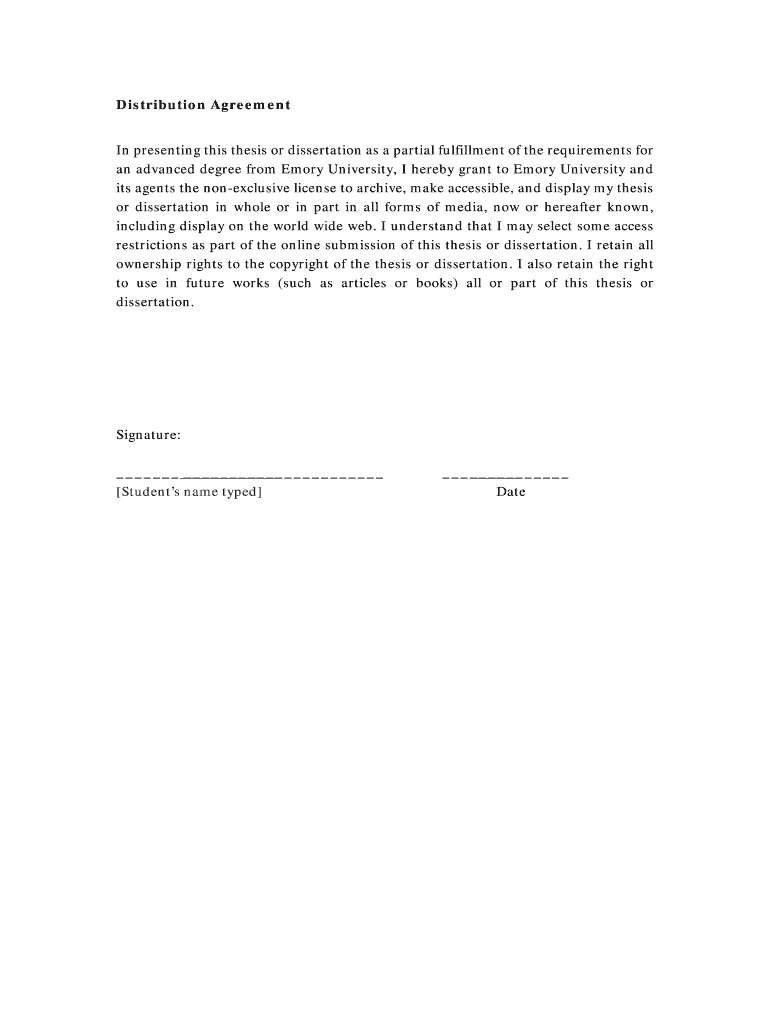 an advanced degree from Emory University, I hereby grant to Emory University and