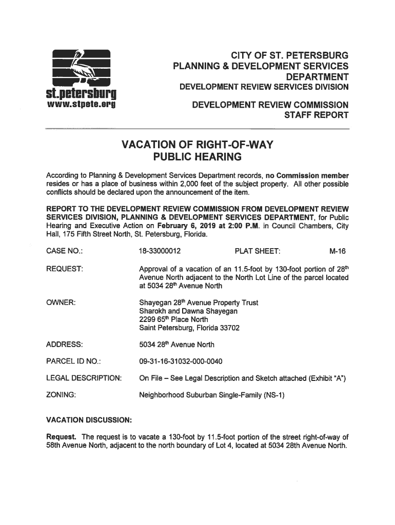 CITY OF ST. PETERSBURG PLANNING & DEVELOPMENT SERVICES DEPARTMENTllllrf!!llllllllst.petersburgDEVELOPMENT REVIEW SERVICES Division.state.redevelopment REVIEW COMMISSION STAFF REPORTVACATION OF RIGHTOFWAY